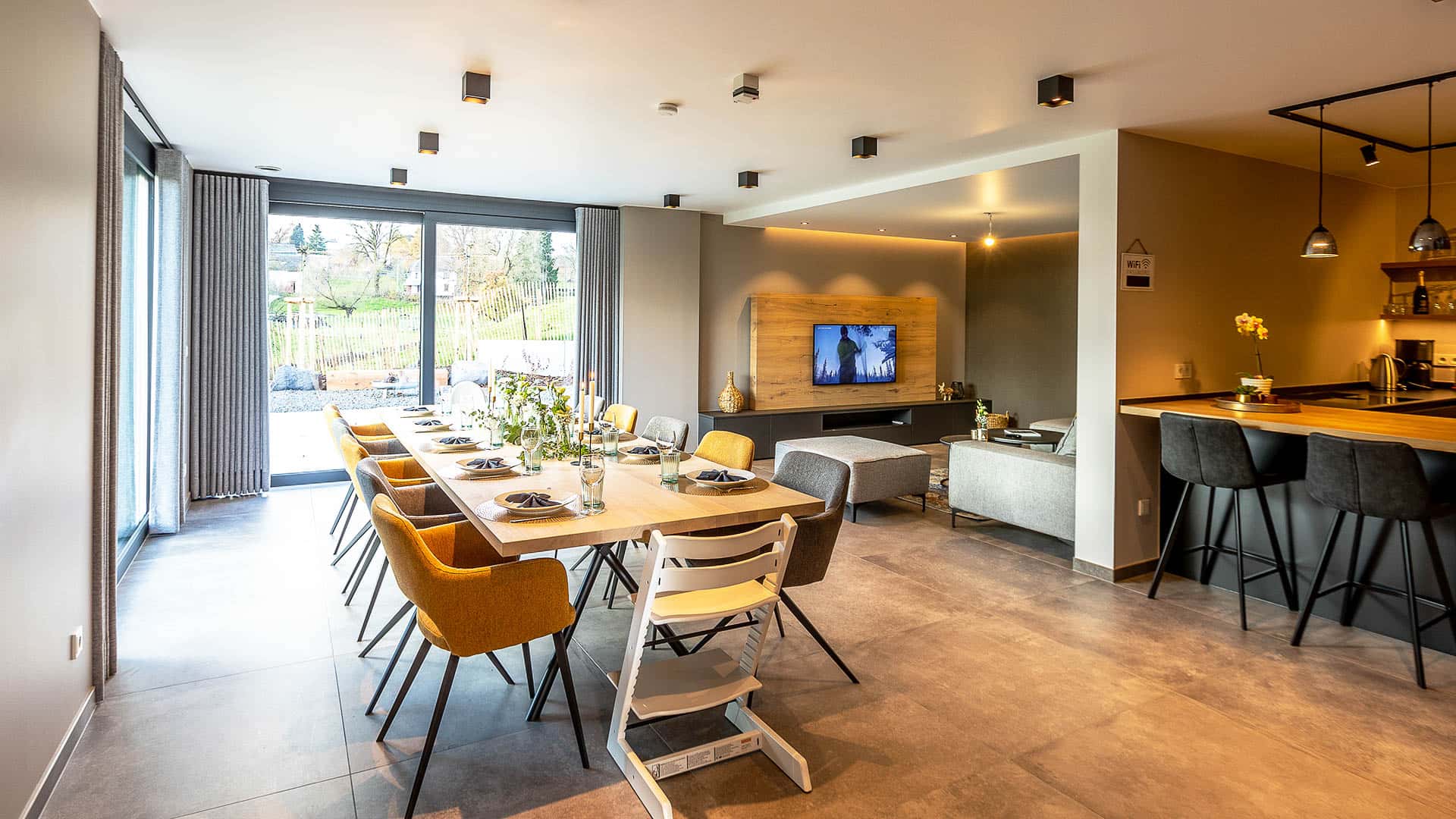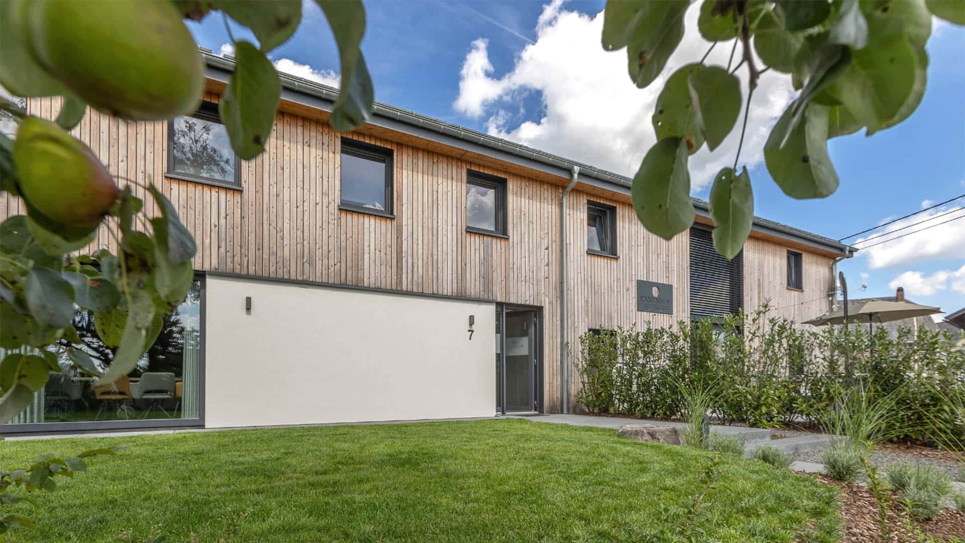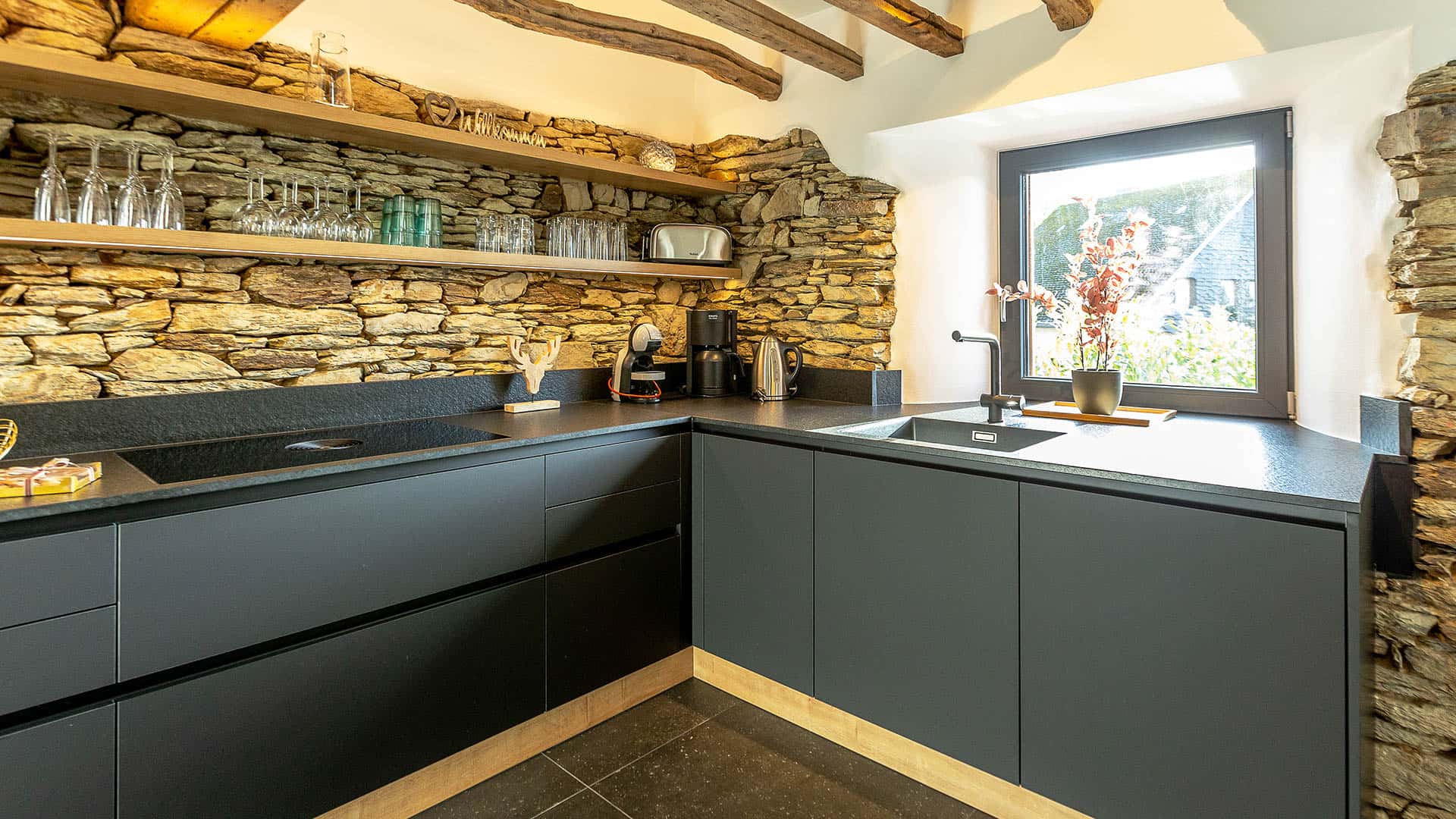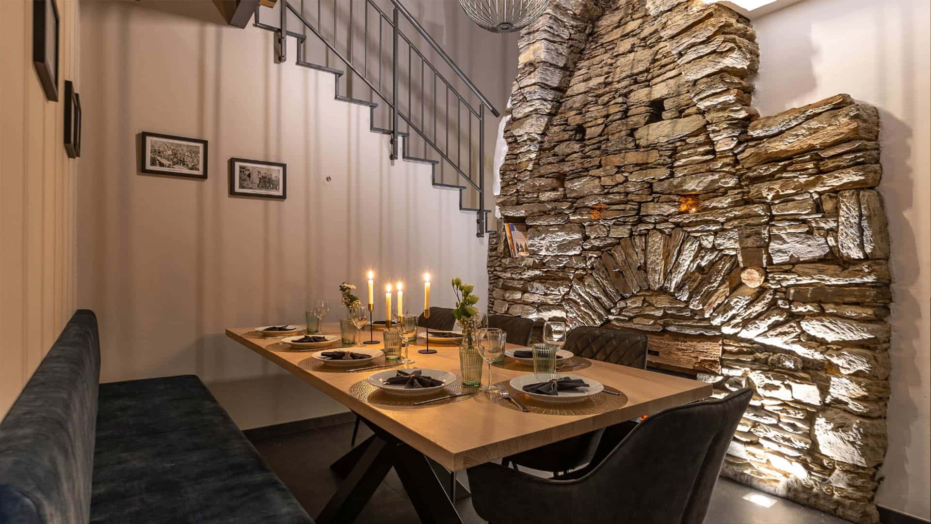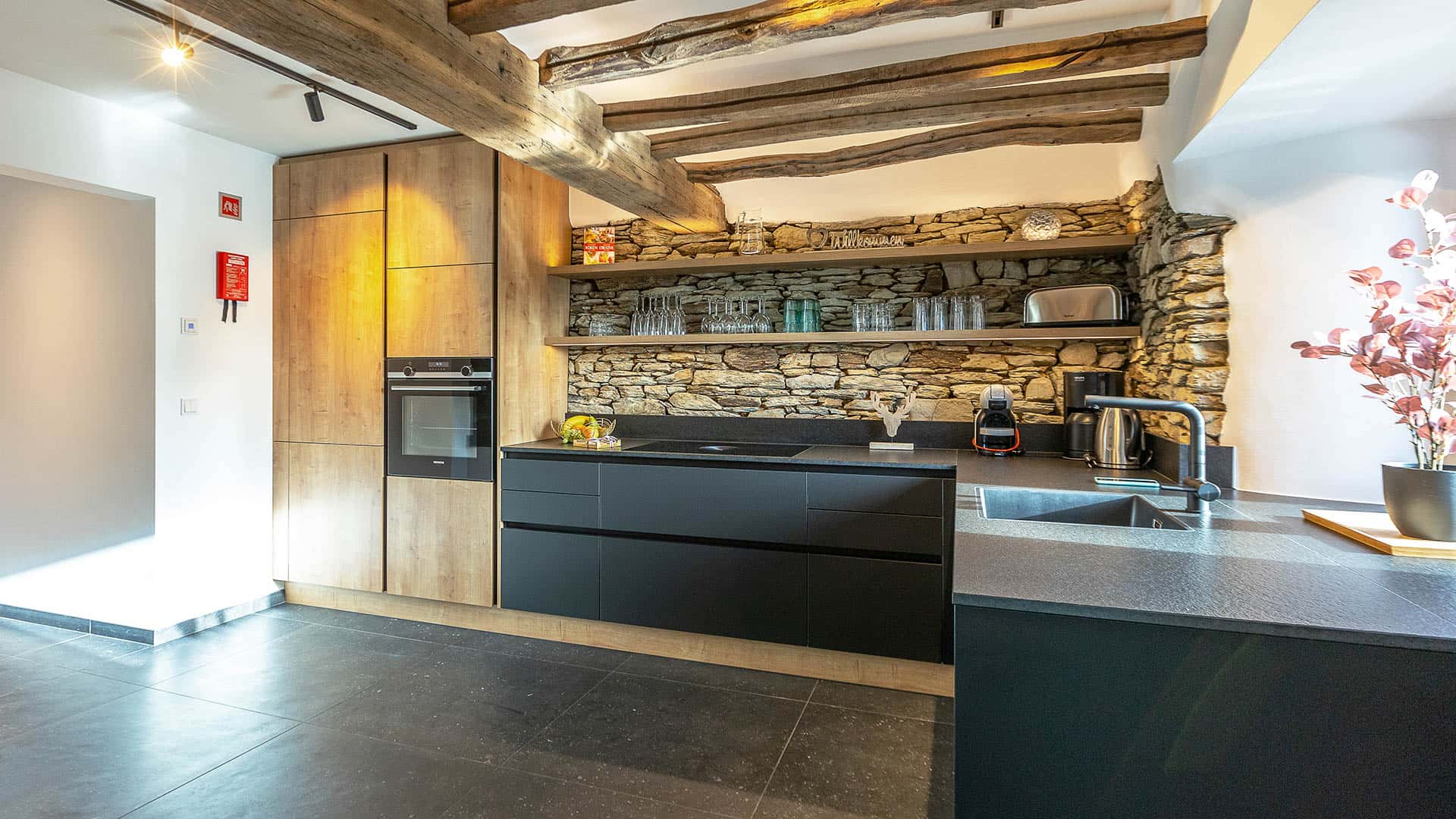 Aus einem ehemaligen Wohnhaus mit Scheune entstand eine liebevoll gestaltete Ferienwohnung mit Wellnessbereich. Die traditionelle Form mit rechteckigem Grundriss und Satteldach bleibt erhalten – typisch für ländliche Architektur. Ergänzt wird sie durch eine Holzfassade mit Brettern aus Echtholz, authentisch und natürlich schön. Historische Details wie der gewölbte Keller, die alte Feuerstelle, Bruchsteinwände und jahrhundertealte Eichenbalken wurden nicht nur bewahrt, sondern bewusst in Szene gesetzt. Auch der Garten wurde respektvoll gestaltet und bietet weiterhin einen naturnahen Ort zum Verweilen.