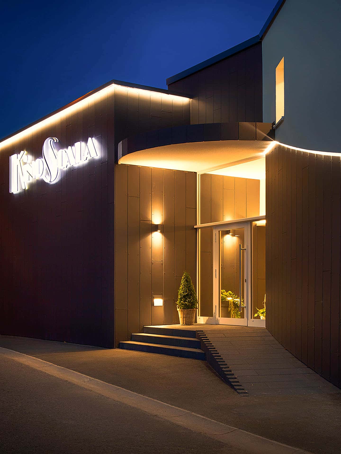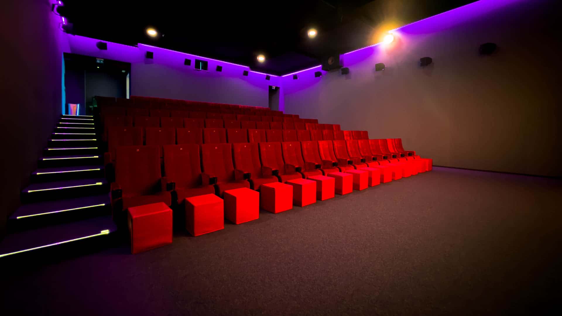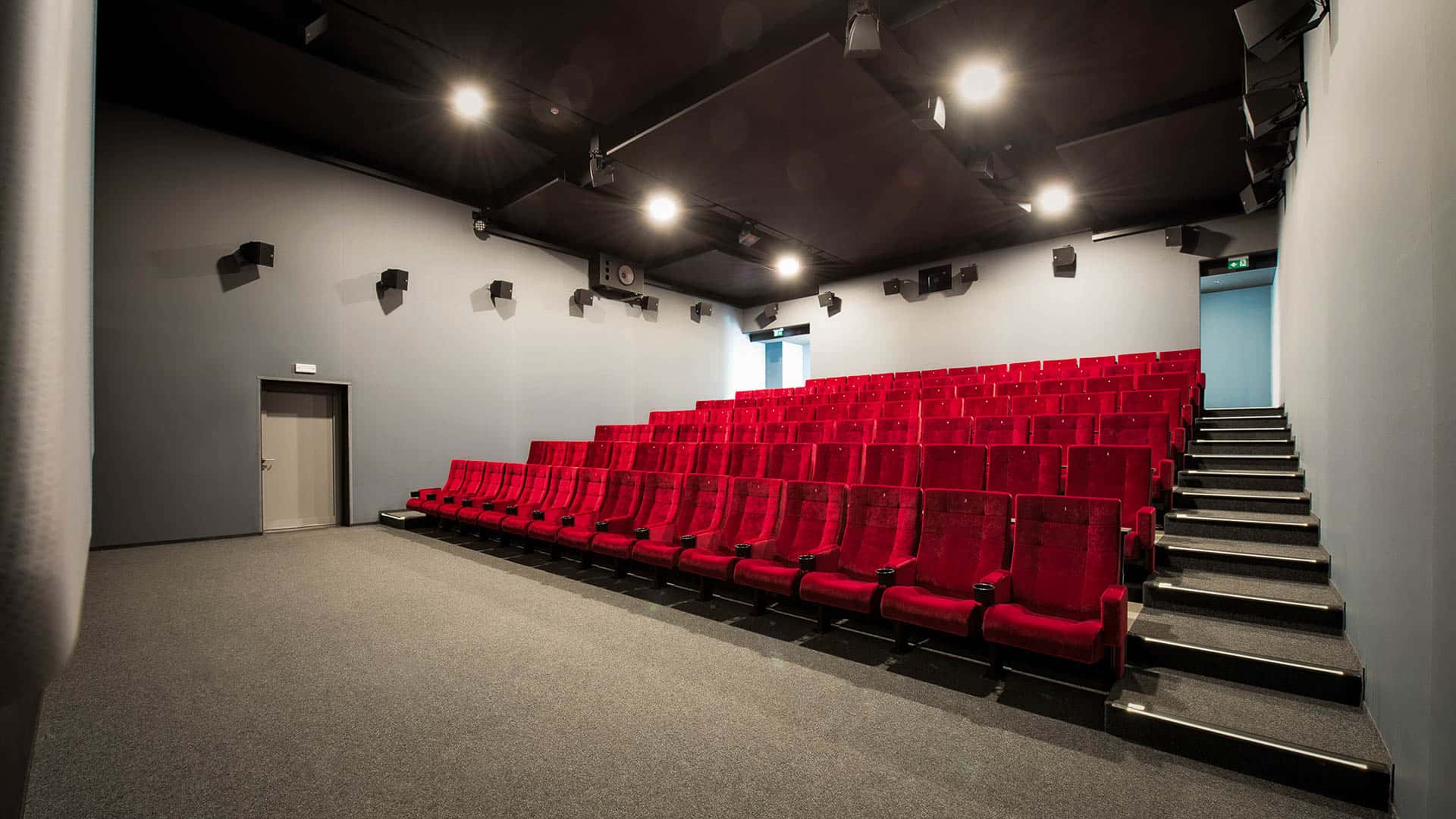 Mit dem Anbau eines neuen Kinosaals auf kleinstem Raum entstand ein spannendes Ensemble aus Alt und Neu. Der Neubau, dezent in Schwarz gehalten, kontrastiert mit dem hellen und freundlichen Bestand. Eine geschwungene Linie verbindet die beiden Gebäudeteile und schafft ein harmonisches Ganzes. Ein neuer Nebeneingang zwischen den Sälen ermöglicht die barrierefreie Erschließung des Komplexes. Aufgrund der Nähe zu Nachbargebäuden wurde besonderer Wert auf Schallschutz gelegt. Energetische Sanierung, modernste Technik und höchster Komfort runden dieses gelungene Projekt ab.